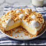 This pie freezes well if you want to prepare it in advance. Wrap it tightly in plastic wrap and then foil before freezing. Thaw it overnight in the refrigerator before serving to preserve the custard’s smooth texture.