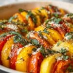 - Assemble Layers: Arrange the thinly sliced squash upright in the baking dish, alternating with slices of shredded mozzarella or provolone cheese. Insert fresh sage or basil leaves between the layers to infuse herbaceous aromas.