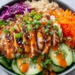 If you want to freeze your Bang Bang Chicken Bowls Recipe components, freeze the cooked chicken and sauce together in a sealed container. Rice tends to freeze well but may lose some texture. Vegetables like carrots and cucumber are better fresh and should be added after reheating.