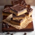 Delicious Buckeye Bars feature a creamy peanut butter base topped with a smooth semi-sweet chocolate ganache, offering a perfect balance of salty and sweet flavors. These no-bake bars are simple to make, chilled until set, and cut into perfect squares for a delightful treat.
