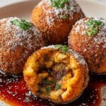 Bulgogi Stuffed Arancini is a creative fusion dish combining Korean marinated beef with crispy Italian rice balls. Juicy, savory bulgogi filling is encased in cheesy risotto and coated with crunchy panko breadcrumbs, then deep-fried to golden perfection. This appetizer or snack offers a delightful blend of flavors and textures that’s sure to impress at any gathering.
