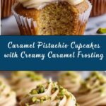 Using a spatula or piping bag, generously frost each cooled cupcake with the caramel frosting. Finish by sprinkling chopped pistachios on top and drizzling extra caramel sauce for that irresistible glossy finish and extra burst of flavor.