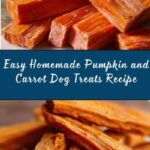 Delicious and healthy homemade Carrot & Pumpkin Chews for Dogs, made with wholesome ingredients like pumpkin purée, grated carrot, and whole wheat flour. These treats are perfect for rewarding your furry friend with a natural snack free from artificial additives.