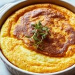 - Bake the Soufflé: Preheat the oven to 350°F (175°C). Grease a 9×9-inch baking dish with butter or cooking spray. Pour the carrot mixture evenly into the dish.