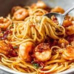 While it’s possible to freeze this dish, the pasta can lose texture upon thawing and shrimp may become rubbery. If you want to freeze, store shrimp and pasta separately, and freeze for up to 1 month to preserve as much quality as possible.