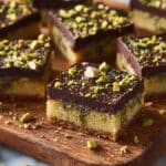 Delight in these rich and decadent Chocolate and Pistachio Bars, featuring a buttery cocoa graham cracker crust, a gooey chocolate layer infused with sweetened condensed milk and vanilla, topped with crunchy crushed pistachios. Perfect as an indulgent treat or an elegant dessert, these bars offer a wonderful balance of chocolatey sweetness and nutty texture.