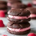 Indulge in these luxurious Chocolate Raspberry Sandwich Cookies, featuring rich cocoa-flavored cookies sandwiched with sweet seedless raspberry jam and topped with a decadent semi-sweet chocolate ganache drizzle. Perfect for sharing at parties or as a delightful treat any time.