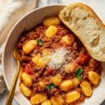 If you want to enjoy this comforting dish later, freeze the Bolognese sauce separately in a freezer-safe container for up to 3 months. Freeze cooked gnocchi if needed, but know they may slightly change texture after thawing.
