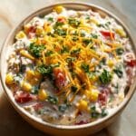 Because of the fresh vegetables and dairy base, freezing this dip isn’t recommended as the texture can become watery and grainy once thawed. It’s best enjoyed fresh or refrigerated for short-term storage to maintain its creamy consistency and full flavor.