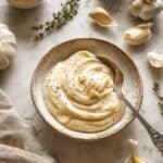 Freezing is not ideal for this Creamy Garlicky Aioli Recipe as the texture may separate once thawed. It’s best enjoyed fresh or refrigerated and consumed within a few days for the best consistency and flavor.