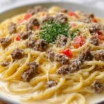 Cooking and sharing this Creamy Italian Spaghetti with Ground Beef Recipe feels like wrapping yourself in a cozy Italian hug. It’s approachable, bursting with flavor, and perfect for both lively family dinners and quiet nights in. Once you try it, you’ll understand why it’s become a favorite—rich, satisfying, and effortlessly delicious. Go on, treat yourself and your loved ones to this creamy delight. You won’t regret it!