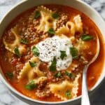This Delicious Easy Lasagna Soup captures all the rich flavors of classic lasagna in a comforting, hearty soup form. Made with ground beef, tomatoes, garlic, and herbs, enriched with creamy cheese, and quick to prepare, it is perfect for a cozy weeknight meal that satisfies without fuss.
