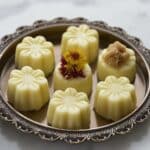 To elevate your pedas further, sprinkle them with finely chopped nuts like pistachios or almonds for crunch and a splash of color. You can also dust the tops lightly with cardamom powder or a few more saffron strands, which will not only enhance the flavor but also make each peda look like a little piece of edible art.