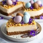 This Easter Egg Cheesecake is a festive and creamy dessert perfect for spring celebrations. Featuring a buttery graham cracker crust and a rich cream cheese filling studded with chopped chocolate Easter eggs, it’s both indulgent and visually delightful. Topped with a drizzle of melted chocolate, whipped cream, and pastel sprinkles, it makes an eye-catching centerpiece for your holiday table.