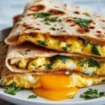 For a vegan twist, use scrambled tofu seasoned with turmeric and kala namak in place of eggs, and pick dairy-free cheese alternatives. Cook as directed, and you’ll have a plant-based take on the Egg Quesadilla Recipe that’s still delightful.