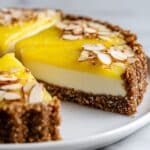 You want the almond crust to be lightly golden and fragrant. Baking for 10 to 12 minutes is usually perfect, but keep an eye on it since ovens vary. If the edges start to brown too much before the center sets, cover it loosely with foil and finish baking.