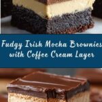 These Fudgy Layered Irish Mocha Brownies combine a rich, dense chocolate base with a creamy Irish mocha topping, blending flavors of coffee, cocoa, and Irish cream liqueur for an indulgent dessert perfect for any occasion.