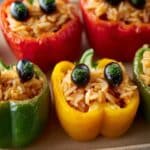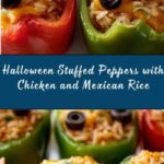 Celebrate Halloween with these festive and delicious Halloween Shredded Chicken & Rice Stuffed Peppers. Colorful bell peppers are carved like jack-o-lanterns, boiled until tender, then filled with a savory mixture of Mexican rice, shredded chicken, black beans, and cheddar cheese. Baked to perfection, these stuffed peppers are both a spooky and satisfying meal perfect for a fun seasonal gathering.
