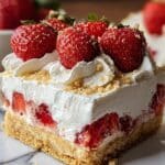 This Irresistible Strawberry Cheesecake Dump Delight is a simple yet decadent dessert that combines the bright flavor of strawberry pie filling with creamy cheesecake and a buttery cake topping. Perfect for spring or any occasion, this easy dump cake recipe features layers of sweet strawberries, smooth cream cheese, and a golden crust made from yellow cake mix and graham crackers. Ready in just over an hour, it’s a delicious treat to serve with whipped cream and fresh strawberries.