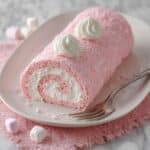 This Japanese Cotton Candy Swiss Cake Roll features a light and fluffy sponge cake infused with delicate cotton candy flavor, complemented by a stabilized whipped cream filling that enhances its texture and taste. Finished with a subtle pink hue and a sweet, creamy filling, this cake roll is perfect for special occasions or a delightful dessert treat.