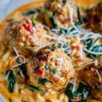 This Marry Me Chicken Meatballs with Risoni recipe offers tender, flavorful chicken meatballs simmered in a rich sun-dried tomato sauce, served with delicate risoni pasta and fresh spinach. Ready in just 25 minutes, this dish combines comforting Italian-inspired flavors with a creamy texture for an easy weeknight meal that impresses.