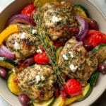 This Mediterranean Chicken Zucchini Bake is a vibrant and healthy one-pan meal featuring tender chicken breasts baked with a colorful medley of zucchini, bell peppers, red onion, cherry tomatoes, and Kalamata olives. Infused with fragrant herbs like oregano, thyme, and basil, and finished with a sprinkle of tangy feta cheese, this dish embodies the fresh, wholesome flavors of the Mediterranean diet, perfect for an easy weeknight dinner.