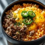 This One-Pot Cheeseburger Orzo Skillet is a comforting and hearty meal combining ground beef, orzo pasta, and melted cheddar cheese in a single skillet. With savory flavors from smoked paprika, Worcestershire sauce, and tender diced tomatoes, it’s a quick and satisfying dinner perfect for busy weeknights.