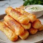 Get creative by stacking the potato cheese sticks in a rustic basket lined with parchment paper for a casual vibe or arrange them neatly on a platter around small dipping bowls for a party-style display. You could even thread several on skewers for a fun finger food twist that’s perfect for gatherings.