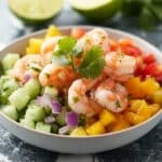 This Shrimp Ceviche recipe is a refreshing and vibrant Mexican appetizer featuring raw shrimp ‘cooked’ in a mix of fresh lime and lemon juices. Combined with crisp vegetables like cucumber, red onion, and tomatoes, and enhanced with cilantro and jalapeño for a perfect balance of flavors, this no-cook dish is light, healthy, and easy to prepare. Ideal served chilled with tortilla chips or tostadas, it’s a zesty treat perfect for warm weather or any occasion.