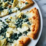 A delicious and creamy Spinach Artichoke Pizza featuring a blend of cheeses, sautéed garlic, spinach, and artichoke hearts on a crispy pizza crust. Perfect for a quick 22-minute homemade meal that combines classic flavors of spinach artichoke dip with the joy of pizza.