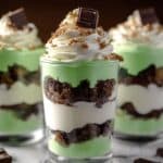 Celebrate St. Patrick’s Day with this festive and delicious parfait featuring layers of lime gelatin mixed with creamy vanilla pudding, light whipped cream, and crunchy graham crackers or granola. Finished with colorful green candies and chocolate shavings, this no-bake dessert is quick to prepare and perfect for a fun holiday treat.