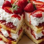 These Strawberry Cheesecake Pancakes combine fluffy, creamy batter with rich cheesecake filling and a sweet, tangy strawberry topping, perfect for a decadent breakfast or brunch.