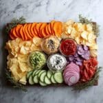 Celebrate cozy home feasts with this Ultimate Latke Toppings Board featuring a delightful assortment of latkes, lox, fresh vegetables, creamy spreads, and traditional garnishes. Perfect for sharing, this board combines classic and modern flavors, including oven-ready latkes, cauliflower latkes, sweet potato waffle fries, and a variety of savory and sweet toppings for a festive and flavorful experience.